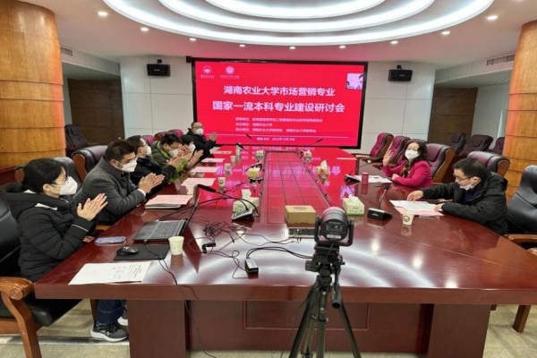 本网讯(商学院 廖翼)为了进一步推动一流本科专业建设点高质量发展,提高一流本科人才培养质量,12月18日下午,市场营销专业国家一流本科专业建设研讨会采取线上线下相结合的方式举行。副校长张立、商学院院长杨亦民,部分教师代表出席线下会议,教育部高等学校工商管理类专业教指委专家田志龙教授、王永贵教授、徐大佑教授、陶虎教授、陈章旺教授,湖南豪爵商务有限公司董事长唐杨松,教务处处长马先锋以及商学院教师通过腾讯会议线上参会。会议由杨亦民主持。