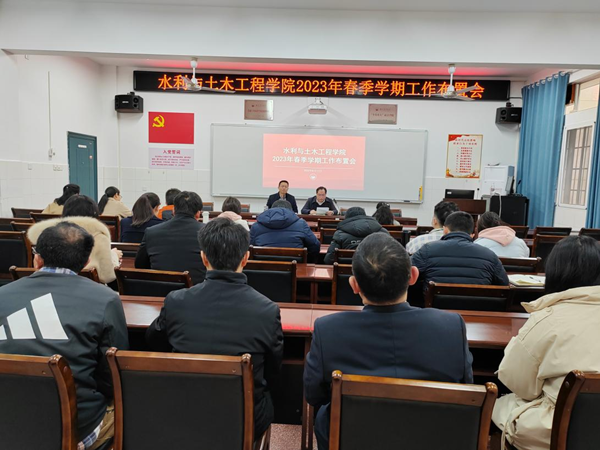 本网讯(水利与土木工程学院 阳华)2月17日上午,水利与土木工程学院在八教召开2022年春季学期工作布置会。院长王辉主持,学院全体教职工参加。