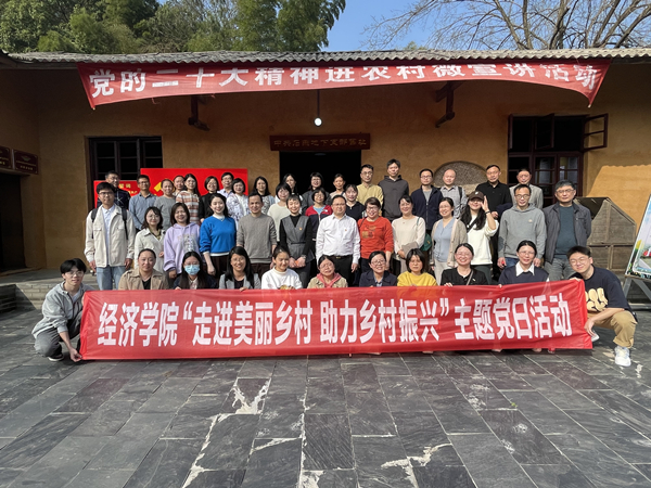 本网讯(经济学院 崔雅泓 肖潇)为进一步学习宣传贯彻习近平新时代中国特色社会主义思想和党的二十大精神,落实乡村振兴战略工作要求,3月9日,经济学院全体教师党员前往跳马镇石燕湖村开展“走进美丽乡村 助力乡村振兴”主题党日活动。