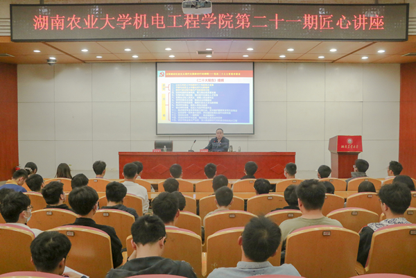 本网讯(机电工程学院 王丹妮)3月16日,机电工程学院于八教学海厅举行第二十一期匠心讲座,长沙市委党校决策咨询部主任、长沙市情研究会常务副理事长李丽纯主讲“全面建设社会主义现代化国家的行动纲领——党的二十大主要精神解读”,学院党委副书记龙小军主持。