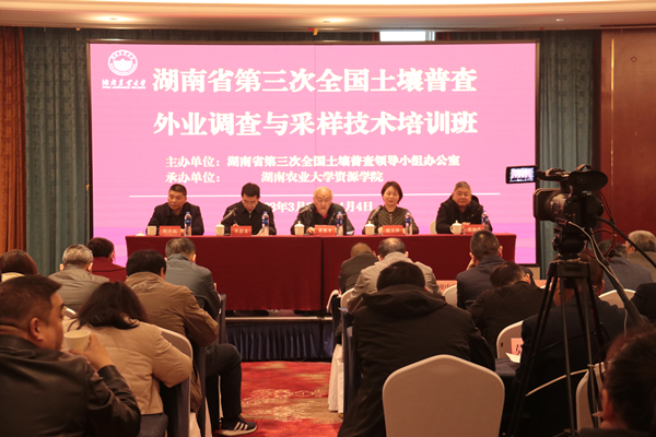 本网讯(资源学院 杨勇 方雅萍)3月26日,湖南省第三次全国土壤普查外业调查与采样技术培训班开班仪式在长沙举行,此次培训由湖南省第三次全国土壤普查领导小组办公室主办,我校资源学院承办。