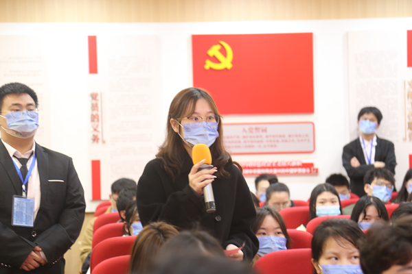 针对学生代表提出大学生入党具体程序及指标时,李苏英给大家谈了发展党员的十六字总要求,并详细讲解了五个阶段和25个环节,以及党章规定的党员标准,强调党员发展要按照始终把政治标准放在首位,确保新发展党员好中求好、优中选优的工作方针。