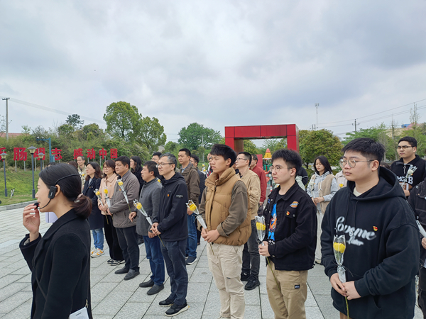 在陈树湘烈士纪念广场,全体党员庄严肃立,默哀致敬,并敬献鲜花,表达了对革命先烈的无限哀思与崇敬之情。