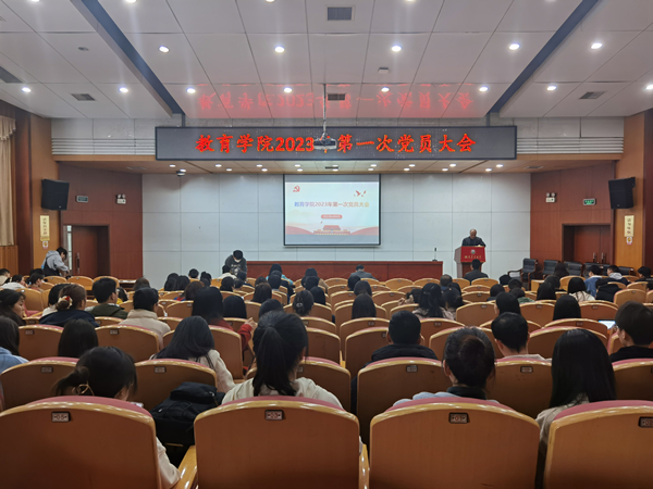 本网讯(教育学院 易丹 姜芊)4月6日下午,教育学院党委在八教学海厅召开全院党员大会,院长郭丽君主持会议。