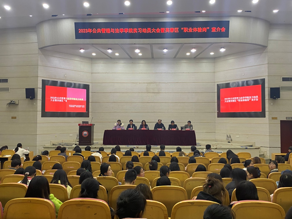本网讯(公管法学院 王薇 张向荣)4月6日上午,公共管理与法学学院在大成厅举行2023年公管类学生实习动员大会暨芙蓉区“职业体验岗”宣介会。副校长张立,芙蓉区人社局党组成员、副局长邓少波出席,公共管理与法学学院党委书记林丽娅,副院长王薇,副书记周芳参加,行政管理、劳动与社会保障、公共事业管理系部分专任教师及2020级全体同学参加。