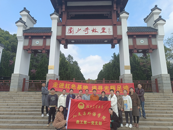 本网讯(人文与外语学院 罗美兰)4月7日,人文与外语学院教工第一党支部前往刘少奇故居开展“走进红色基地,追寻光辉足迹”主题党日活动,副院长谭燕萍、支部全体党员参加。