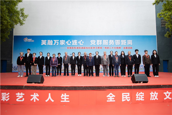 本网讯(商学院 邹亚 梁家玮)为全面贯彻落实党的二十大精神,推进院社联学共建,为开展学习贯彻习近平新时代中国特色社会主义思想主题教育“开好头、起好步”,4月10日,商学院联合韶光社区举办了“芙融万家心连心 党群服务零距离”主题活动。芙蓉区委组织部副部长、两新党工委书记甘丽丹、商学院党委副书记潘斌、“最美高校辅导员”常徕、东湖街道与韶光社区负责人、韶光社区“光荣在党50年”老党员代表和商学院2022年下半年新发展党员参加了本次活动。