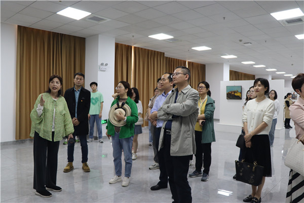 商学院师生一行参观了“藏源印象 大美山湖”主题展。作为策展人,李雪蓉生动地介绍每一幅画作的创作背景、创作意图和艺术价值。师生们身临其境地感受到了雪域高原壮美的自然环境、纯真质朴的藏族风情、基础设施翻天覆地的变化和援藏党员干部矢志艰苦奋斗、勇于攻坚克难的精神。