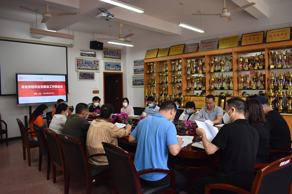 本网讯(体育学院 喻紫艳)5月17日,体育学院在十教南137召开2023届毕业生就业工作推进会,学院党政班子成员、全体辅导员、毕业班班主任及研究生导师参加,学院党委副书记彭成根主持会议。