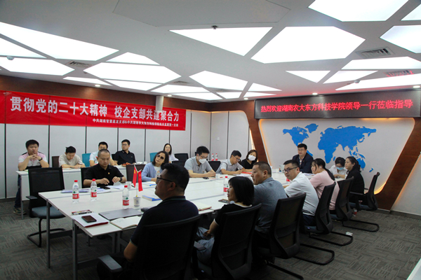 本网讯(东方科技学院 杨俊兴)5月25日,东方科技学院机关一党支部与湖南智慧昌龙电子科技有限公司党支部举行党建共建交流活动,学院党委书记朱杰辉、副院长蔡鑫萍,湖南智慧昌龙电子科技有限公司总经理曾暮桥、党支部书记唐邵,及支部全体党员参加活动。