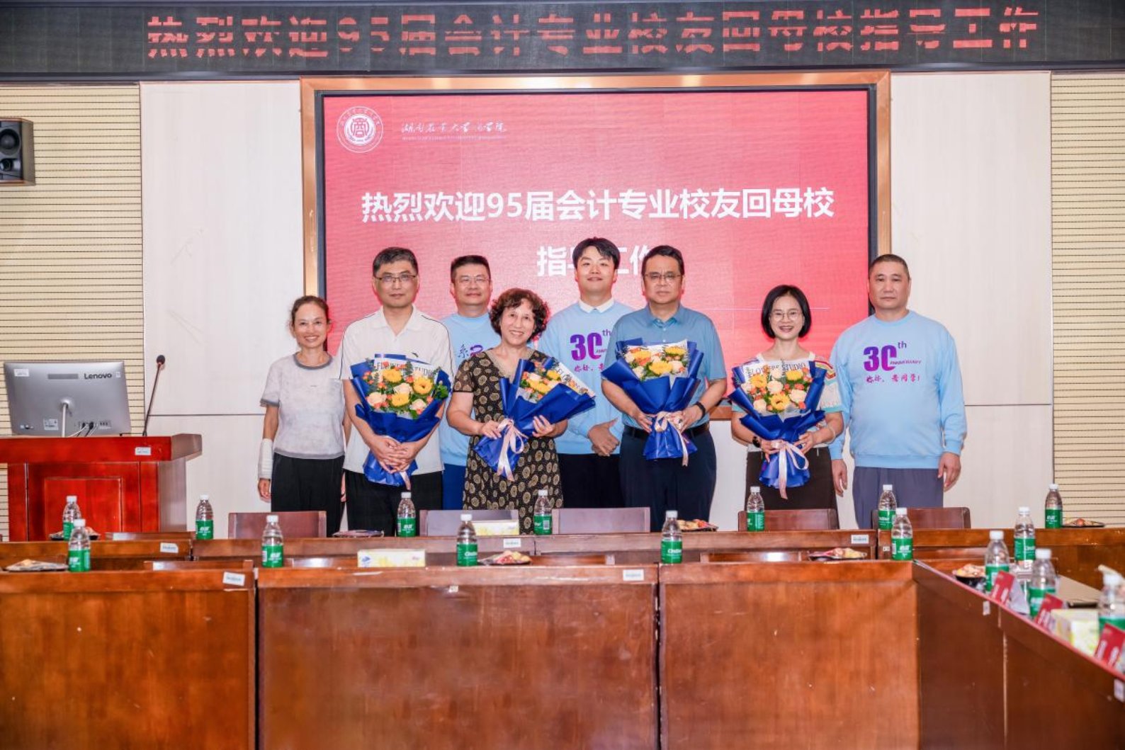 本网讯(商学院 黄伟强 常春桂)10月7日,来自海内外的95届会计专业54名校友重返母校,举行毕业三十周年纪念活动,学校原副校长、原经管学院院长曾福生,授课恩师和班主任代表马巾英、谢小芸、冯彬,经济学院、商学院教师代表共同见证了这一深情相聚的时刻。