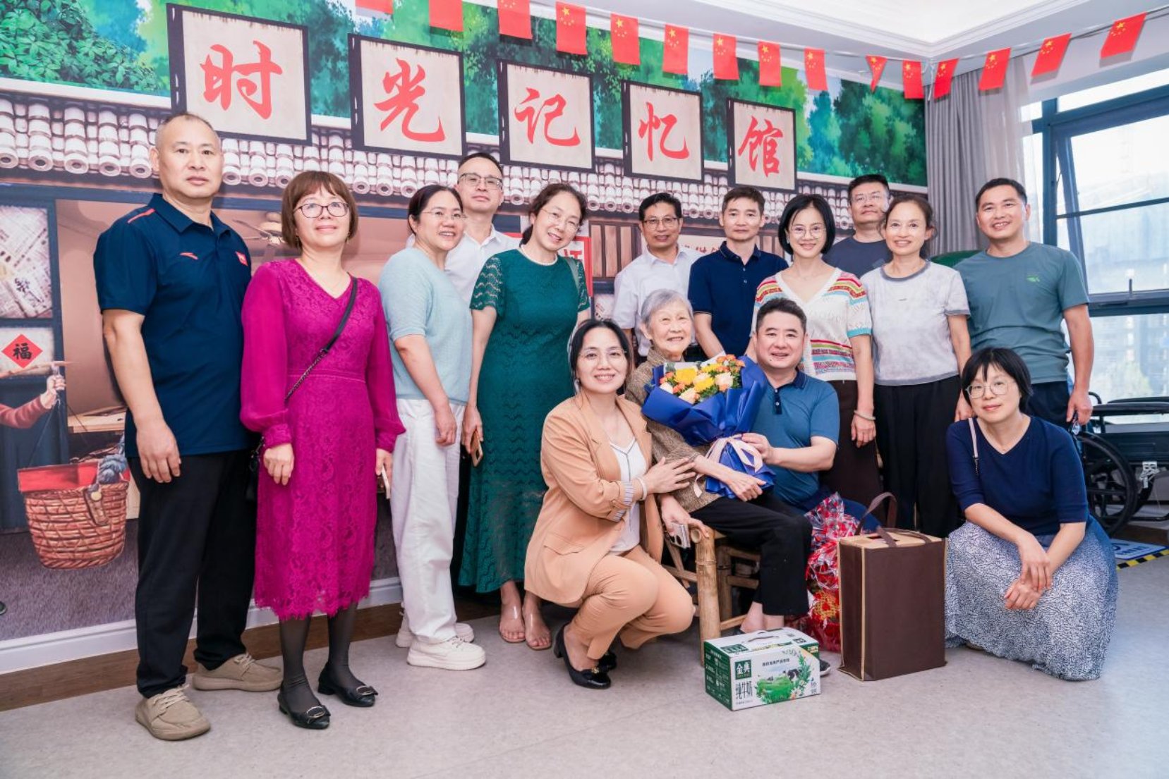 此次聚会活动特别设置“银发致敬”环节。校友代表驱车前往长沙协和颐养院探望85岁高龄的杨大媛老师。这位退休二十载的老教师在学生的提示下,回忆往昔岁月,师生双手紧握,温情弥漫。