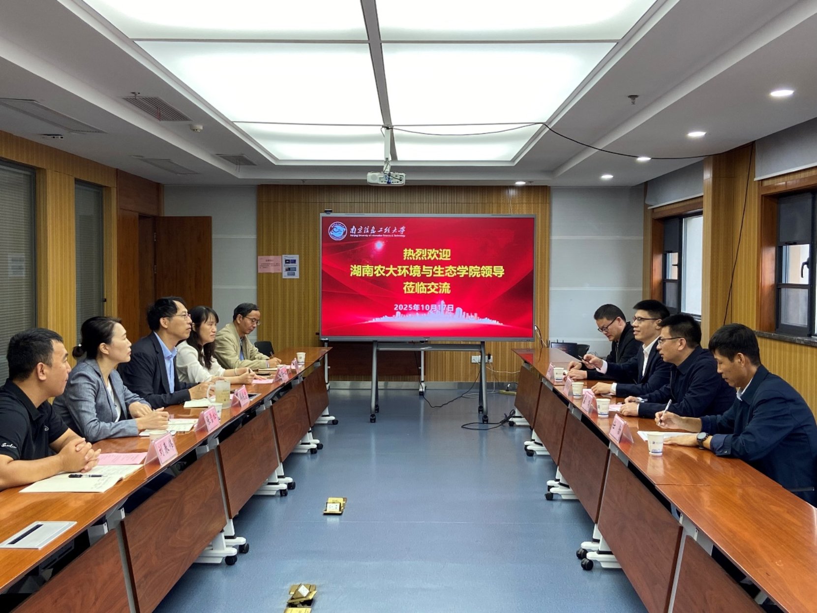 南京信息工程大学生态与应用气象学院院长冯兆忠、党委书记陈一虹及应用气象系教师代表等5人对周耀渝一行的到来表示热烈欢迎,并表示,愿意与湖南农业大学环境与生态学院建立长期稳定的合作关系,大力支持湖南农业大学环境与生态学院专业建设,共同为培养高素质气象学专业人才、服务国家战略需求和推动经济社会高质量发展贡献力量。