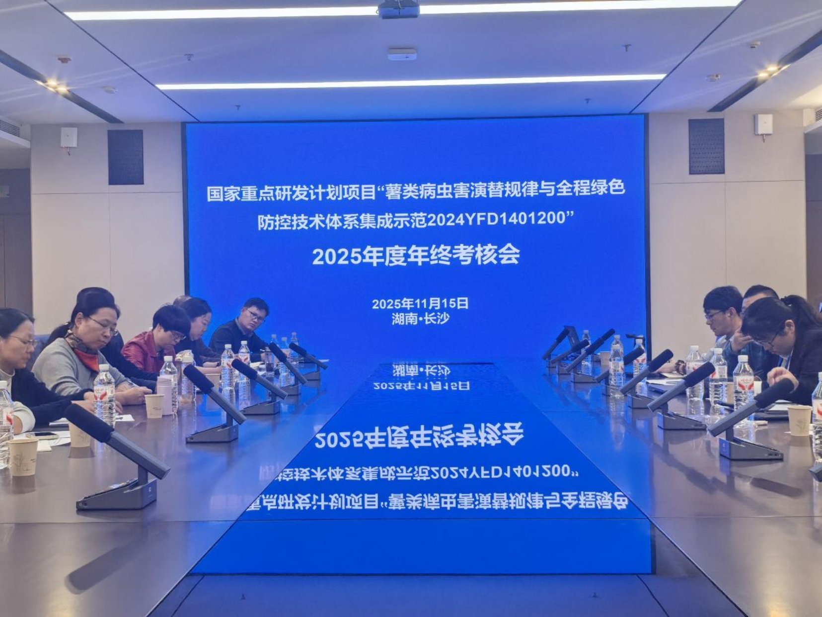 本网讯(植物保护学院 刘晶)11月14日至16日,国家重点研发计划项目“薯类病虫害演替规律与全程绿色防控技术体系集成示范”2025年度年终考核暨现场观摩会在长沙和沅江举行。会议由我校植物保护学院承办,汇聚了全国多所科研院所和高校的专家学者。