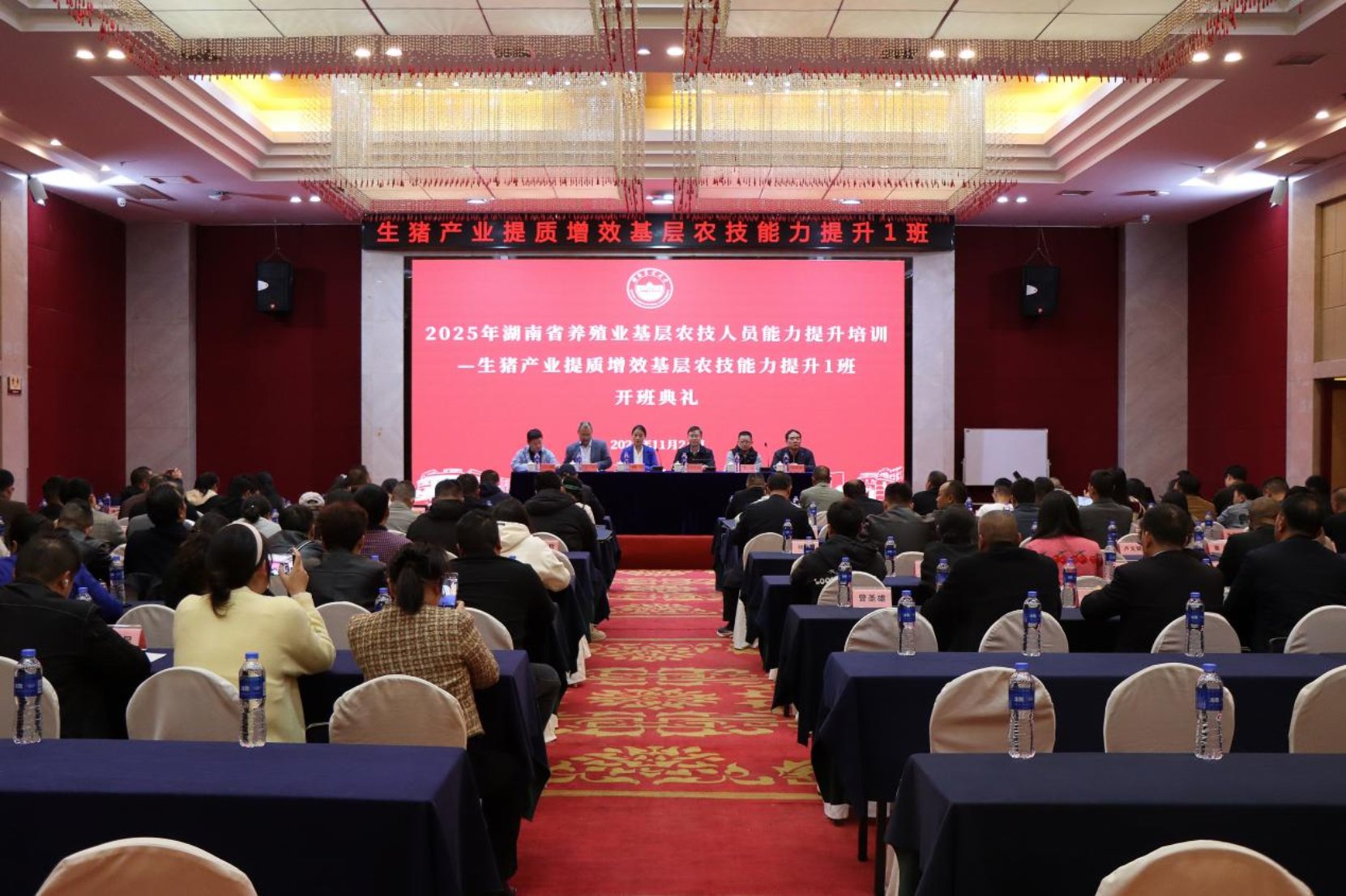 本网讯(动物科学技术学院 谷康瑞 张璐)11月24日,我校动物科技学院承办的2025年湖南省生猪产业提质增效基层农技能力提升培训班在长沙开班。湖南省畜牧水产事务中心党委书记、主任张志龙,我校党委委员、副校长覃红燕等出席开班仪式,动物科技学院院长贺喜主持。