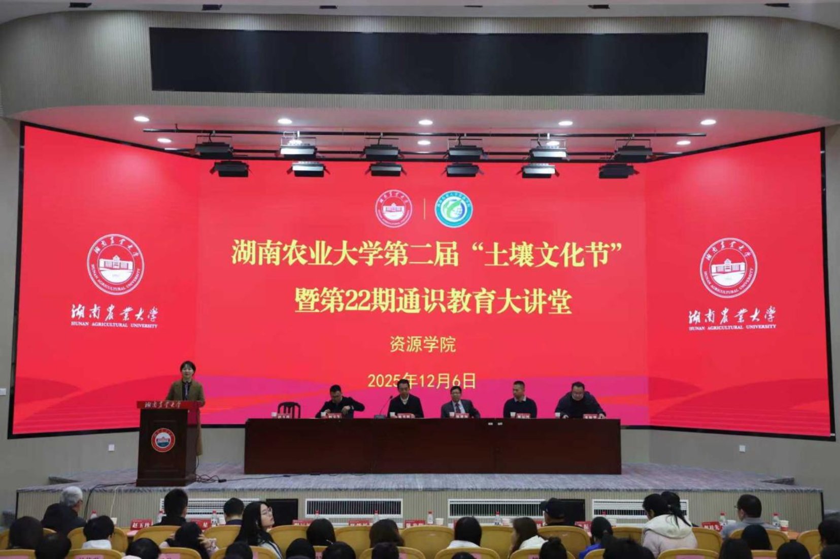 本网讯(资源学院 向瑾萱)12月6日上午,学校第二届土壤文化节开幕式暨第22期通识教育大讲堂在图书馆大成厅举行。中国科协土壤环境科学传播专家团队首席专家、中国土壤学会科普工作委员会主任陈能场研究员应邀作《健康土壤 健康人类》专题讲座。资源学院党委书记赵玉珍主持,全校300余名师生参加。