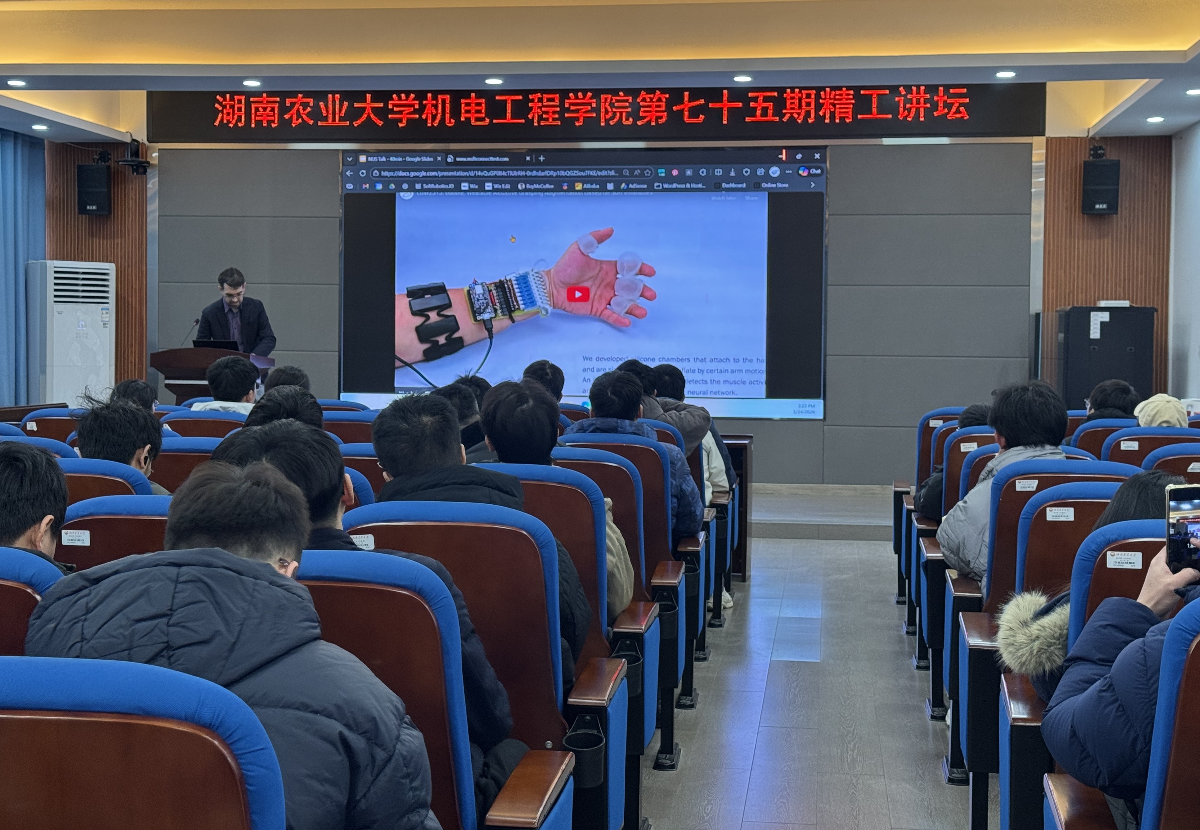 讲座重点介绍了其博士论文中的核心成果——FlowIO模块化软体机器人开发平台。双方专家结合我校“新工科”与“新农科”融合发展的特色,深入探讨了FlowIO平台与学院“仿生瘤胃”研究的结合前景。Ali博士详细讲解了如何利用 FlowIO精确的气动控制与感测技术,模拟生物消化系统中复杂的蠕动与流体环境。这种跨学科的交叉创新模式,为智慧农业装备研发提供了新思路,也展示了新技术赋能传统农科的研究路径。