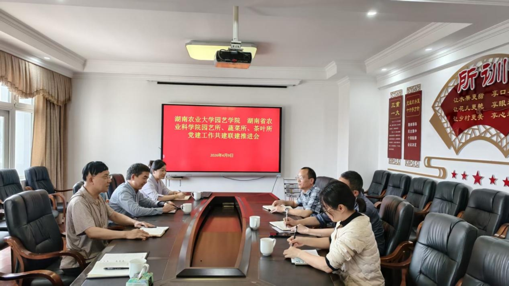 本网讯(园艺学院 李晓峰)4月9日,我校园艺学院与湖南省农业科学院园艺研究所、蔬菜研究所、茶叶研究所党建共建联建推进会在省农科院举行,双方相关负责人参加。