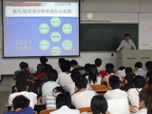 5月13日下午,生安院在九教学楼南302举行报关员、报检员就业指导讲座。此次授课的老师是湖南省商务厅培训中心主任杨文辉。