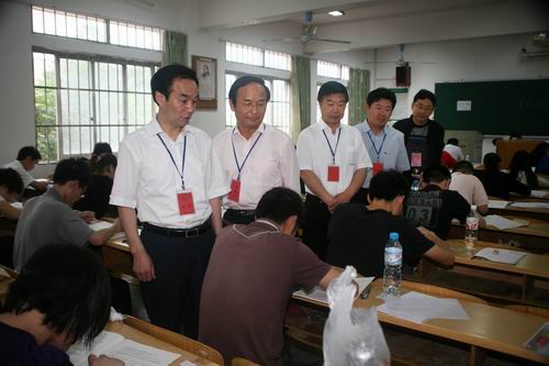 省委组织部副部长李宗文在校党委书记刘强等领导的陪同下视察考试工作