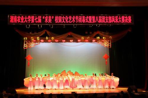 闭幕式上,陈冬林副校长代表校党委、行政致闭幕词。首先,他对本届“求美”校园文化艺术节的成功举办表示热烈祝贺,向为热情参与本届艺术节的全体师生表示衷心的感谢。随后,陈冬林副校长对本届“求美”文化艺术节的活动内容进行了简要介绍。他指出,本届“求美”文化艺术节以“繁荣校园文化,拓展学生素质”为宗旨,以学生自编、自导、自演为主要形式,举办了社团文化艺术节、团支部风采大赛等大型的系列活动。整个艺术节呈现出三大显著特点,一是学生参与面广,“求美”理念彰显;二是活动形式多样,内容丰富多彩;三是学院品牌凸显,专业特色鲜明。最后,陈冬林副校长强调,依托“求美”文化艺术活动教育体系开办的文化艺术节旨在培养当代大学生发现美、欣赏美、追求美、创造美的求美艺术品格,希望所有湘农学子在繁荣校园文化、陶冶高尚情操、拓展自身素质、促进全面发展等方面再创新的辉煌。