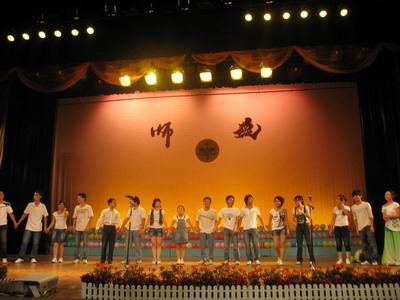 最后,师范学院第十八届团总支、学生会主要干部及学工组老师集体登台,饱含深情地演唱了自编自导的《科师欢迎你》,唱出了学院所有老师和学生干部的心声。