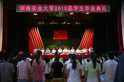 6月17日上午,我校2010届学生毕业典礼在大礼堂隆重举行,中国工程院院士官春云,校领导周清明、彭克勤、符少辉、卢向阳、曾福生、陈冬林、周仲文、王湘、齐绍武出席了毕业典礼。各学院、机关处室负责人,各学院副书记、辅导员以及部分教师代表、毕业生代表参加了此次毕业典礼。典礼由陈冬林副校长主持。