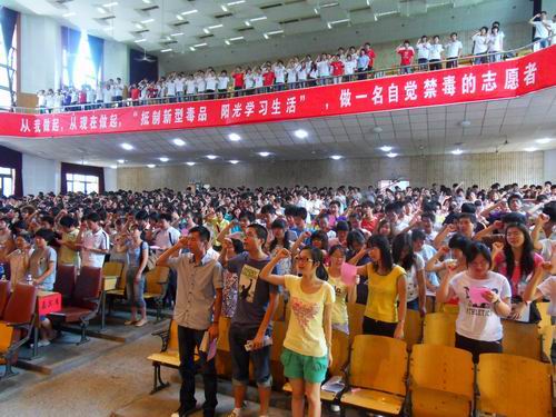 6月26日上午九点,由湖南省妇女联合会、芙蓉区政府、湖南农业大学、湖南生物机电职业技术学院、湖南司法警官职业学院、湖南省水利水电职业技术学院联合主办的2010年“6•26”国际禁毒日大型宣传教育活动在我校大礼堂隆重举行。出席本次活动的嘉宾有:湖南省妇联副主席罗双全女士、湖南农业大学副校长齐绍武、长沙市芙蓉区政府副区长刘熙宇、湖南农业大学团委副书记兰勇等。相关学校千余名学生代表参加了本次活动。
