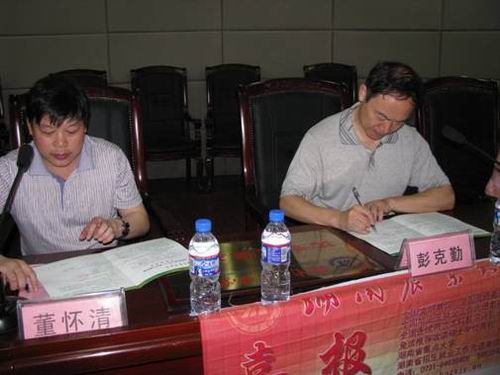 彭克勤副书记与华容县一中董怀清校长签订”湖南农业大学优秀生源基地“合作意向书