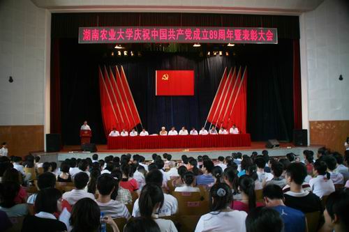 7月1日下午,湖南农业大学庆祝中国共产党建党89周年暨“七一”表彰大会在学校大礼堂隆重召开,在校的校领导与党员代表一起参加了表彰大会。大会由校长周清明主持。