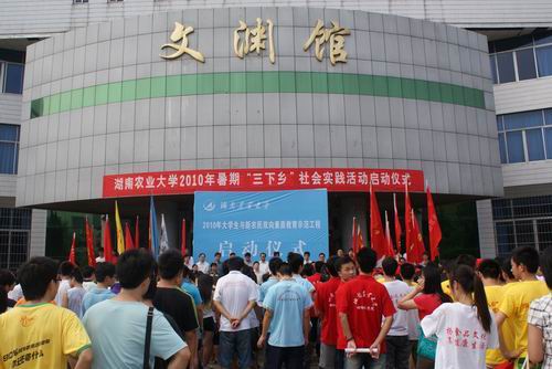 我校2010年暑期“三下乡”社会实践活动暨“大学生和新农民双向素质教育示范工程”启动仪式在校文渊馆前坪举行