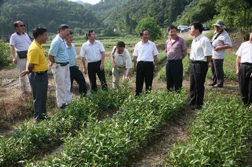 刘强书记一行考察沅陵县官庄镇茶叶苗圃基地