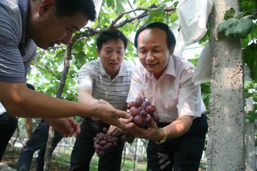 刘强书记一行深入田间地头在澧县湖南农业大学葡萄科研基地考察