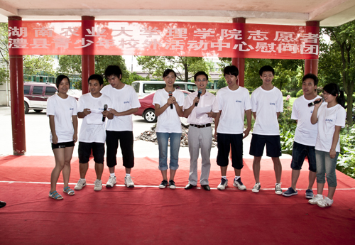 赴常德澧县开展孤寡老人幸福指数调研与帮扶的小分队,顶着炎炎烈日,一周内走访了14个敬老院及乡村,耐心的与老人交流,一丝不苟的记录,认真做好了每一份调查问卷。在澧县福利院,志愿者们与还组织了当地的少儿艺术团一起为孤寡老人们送去了文艺演出。调查结束后,对问卷进行了科学系统的分析后形成总结报告,并与澧县民政局、澧县残联等进行了深入的探讨。澧县电视台对活动进行了跟踪采访报道。