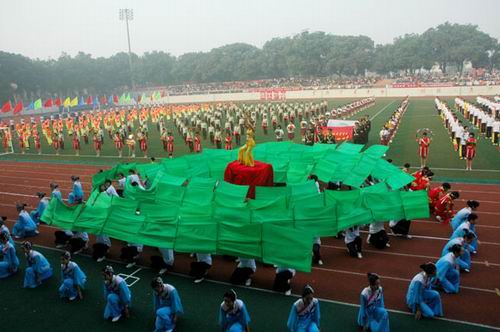 上午八时整,国旗队、院旗队、会旗队、彩旗队、花环队、花束队、各学部方阵队依次入场,拉开了本届运动会序幕。他们迈着铿锵有力的步伐,展示着“东方学子”的风采。各学部方阵队别出心裁的入场式成为开幕式上一道绚丽的风景线,经管学部的舞龙表演、理工学部机器人表演、人文学部的健美操表演、生科学部的“生命之源”大型舞蹈表演,充分展示了专业与文化的结合,给现场观众带来强烈的视觉冲击,赢得了热烈的掌声和喝彩。