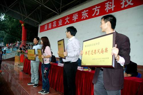 下午五时整,本届运动会闭幕式开始。总裁判长彭曾恺宣布比赛成绩:生命科学学部和理工学部获得优秀组织奖,经济管理学部和人文社会科学学部荣获道德风尚奖。随后,东方科技学院党委书记朱翠英致闭幕辞,她充分肯定了本届运动会所取得的成绩,认为本次大会是团结、拼搏、成功的盛会。最后,朱翠英书记宣布学院第四届田径运动会胜利闭幕。