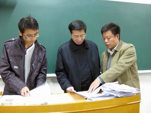 10月29日晚,由校学生工作处组织的2010级新生《学生手册》考试在第七、九、十教学楼全面展开。陈冬林副校长在学工部部长刘启定的陪同下深入到各考场进行了巡考。