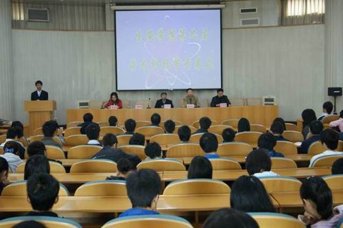 戴良英院长致开幕词。戴良英院长对第九届学术科技节的开幕表示热烈祝贺。他首先介绍了学院在往年学术科技节中的丰硕成果,肯定了曾经所取得的成绩,希望广大同学以最大的热情积极参与到学术科技节的各项活动中,要敢于发散思维,勇于开拓创新,把自己所学应用到实践中,在实践中展现自我,努力提高自己的实际动手能力,培养自己的科研创新能力和团队合作能力,把学院的学术科技节办成有特色的学术科技活动。