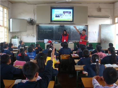 地处城乡结合部,位于长沙市芙蓉区东岸乡的合平小学,全校7个教学班的300余名学生大多为外来务工人员的子女,校园文化基础设施相对薄弱。活动中,我校东方科技学院青年志愿者分为6个小组,分别下到不同年级的6个班级对小学生们开展阅读辅导。制作精美的幻灯片,妙趣横生的互动环节,志愿者用富有感染力的教学和满腔的热情,让孩子们切身地感受到了书本的魅力。