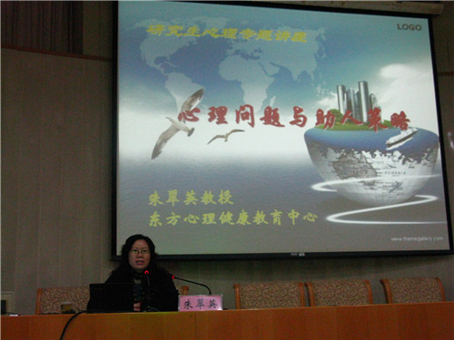 朱翠英教授以丰富的教育研究与心理咨询经验为大家作了题为《心理问题与助人策略》的讲座,她针对学生心理多发异常状况和学生的心理需求,围绕心理健康的标准是什么、心理正常与异常的区分、心理助人与自助的策略这三方面展开,重点从统计学、文化人类学、社会学、精神医学、认知心理学等角度来分析心理异常,并指导研究生们用“未来导向、知行整合的助人路线图”来帮助自身或他人来解决心理健康问题。朱翠英教授通过一系列生动的案例,让同学们在轻松愉快的气氛中学会正确认识和应对心理健康问题。