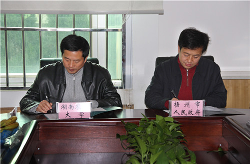 齐绍武副校长与梧州市副市长吴浩岭签署协议