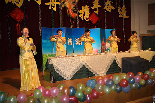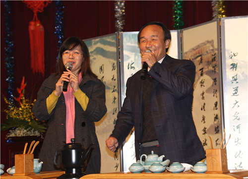 联欢会文艺演出与茶艺表演在刘强书记与省委统战部刘丽辉副处长合唱的歌曲《十五的月亮》优美的歌声中拉开序幕,彭克勤副书记一首《老师,我想你》,在这辞旧迎新的时刻表达了对老师的感激。农工党员、湖南艺术职业学院蔡霞教授,农工党员、湖南杂技团成心全教授,民革成员、湖南京剧团冯育明教授等为联欢会献上了精彩的节目,我校园艺园林学院与东方科技学院茶艺队做了精彩的茶艺表演。我校农工党员与民革成员表演了丰富多彩的文艺节目。