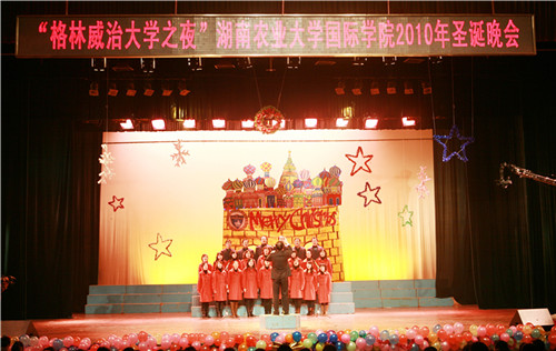 12月22日晚,“格林威治大学之夜”国际学院2010年圣诞晚会在大礼堂精彩上演,本次晚会由国际学院主办,国际学院团总支学生会承办,我校合作大学英国格林威治大学中国办事处协办,校党委副书记彭克勤,副校长陈冬林,英国格林威治大学代表Dr. Jon Bassa出席。