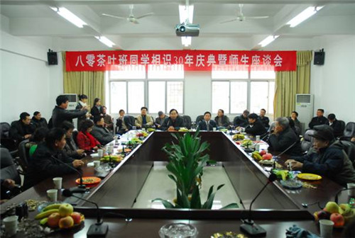 施兆鹏教授、王融初教授和刘富知教授等五位老师代表任课教师作了发言,他们分别回忆了八O级茶叶班校友大学阶段学习和生活的点点滴滴,对校友们今后的工作与生活表达了美好祝愿。