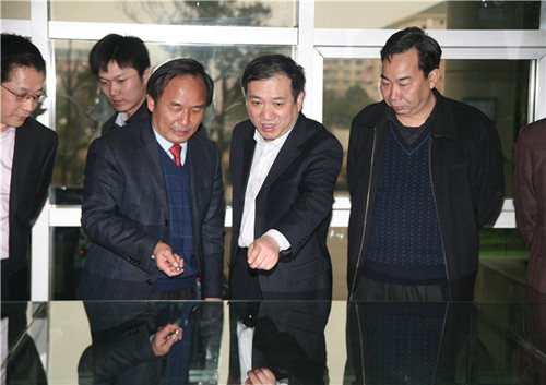 教育部思政司司长杨振斌一行在校党委书记刘强、校长周清明的陪同下参观校园全景沙盘模型 何纲跃 摄
