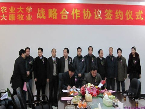 薛立群院长与大康牧业股份有限公司陈黎明董事长代表双方签字。签约仪式由大康牧业股份有限公司夏正奇总经理主持。