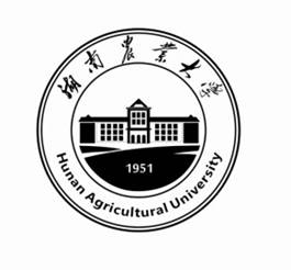 校徽设计将湖南农业大学最有代表性的第一教学楼采用图形简化的方式进行重新设计,代表湖南农业大学辉煌的历史和深厚的文化底蕴,下面的图形则寓意农大这片肥沃的土地。徽章色彩以中国红为主,体现着能量的充沛,象征热情、喜庆和自信,突出了农大人奋进的精神;学校中英文字体均为金黄色,是辉煌、明亮的色彩,代表了学校辉煌的历史和光明的前景;深绿色的草地则体现了勃勃生机、稳步发展与环保农大。