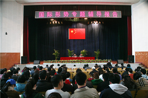 3月9日下午,湖南农业大学党委中心组扩大学习专题辅导报告会在大礼堂举行。校党委书记刘强主持了报告会。湖南师范大学马克思主义学院周仲秋教授就当前国际形势作了专题辅导报告。校党委理论学习中心组全体成员、全校处科级干部、辅导员、班主任、关工委老师、思想政治理论课教师、学生代表等1000多人参加了报告会。