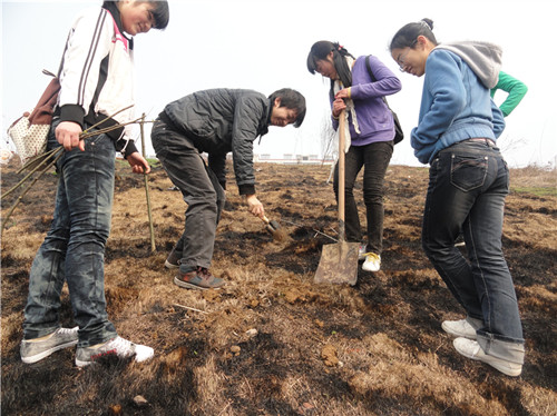 3月12日,我校生态环境保护协会与生物科学技术学院青年志愿者协会组织学校100余名大学生志愿者来到浏阳河畔,争向“绿色银行”储绿,种下了上千株柳枝。