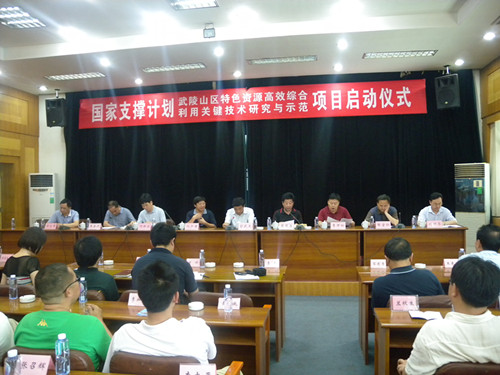 6月21日,由我校国家植物功能成分利用工程技术研究中心主持承担,肖文军教授任首席专家的“十二五”国家科技支撑计划首批启动项目--“武陵山区特色资源高效综合利用关键技术研究与示范”启动仪式在湘西自治州隆重举行。科技部农业产业处、湖南省科技厅农村处、湘西自治州政府与我校国家植物功能成分利用工程技术研究中心、科技处相关领导出席并发表讲话,湘西自治州科技局、张家界科技局、项目参与专家学者及相关企业的负责人等参加了启动仪式。项目首席专家肖文军教授详细介绍了项目情况,各参与企业研究团队负责人现场呈交承诺函。项目启动仪式之后,各研究团队成员召开了首次工作会议。